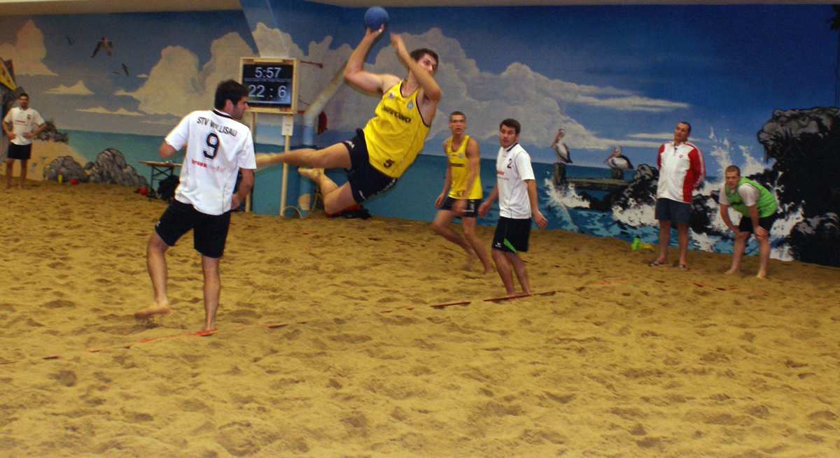 Sustav natjecanja u seniorskoj konkurenciji uključivao je 16 ekipa raspoređenih u 4 grupe po 4 ekipe. Dvije najbolje plasirane ekipe iz svake grupe prolazile su u četvrtfinale odakle se igrao eliminacijski sustav. AKRP Zagreb je u muškoj konkurenciji imao 3 ekipe: Detono Zagreb, Chemo profili Zagreb te Detono Zagreb 2, s naglaskom da su potonje dvije ekipe igrale i juniorski dio turnira, na kojemu je osim njih sudjelovala i švicarska reprezentacija rukometa na pijesku (1994g i mlađi).