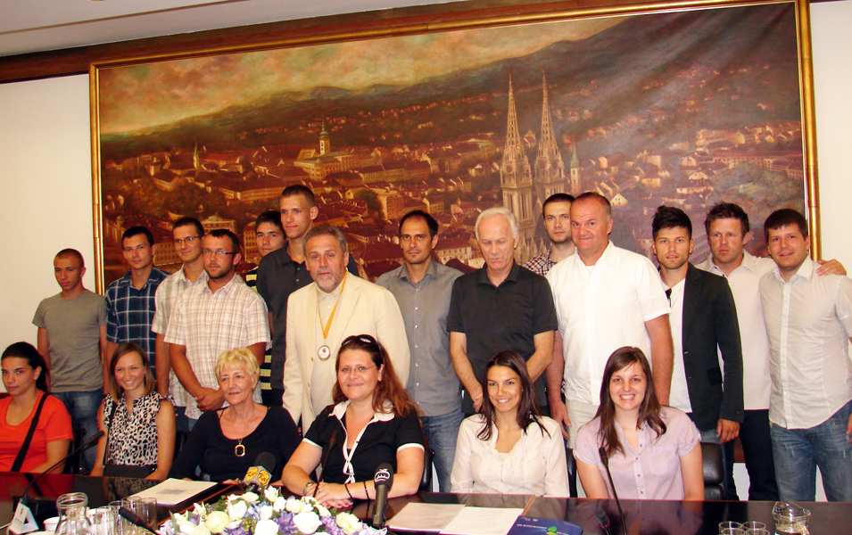 Zagrebački gradonačelnik, gospodin Milan Bandić, primio je jutros članove Akademskog kluba rukometa na pijesku Detono Zagreb povodom osvajanja dvostrukog naslova europskih klupskih prvaka u muškoj i ženskoj konkurenciji. Ženskoj ekipi Detono Zagreba ovo je drugi naslov europskih prvakinja, dok je dečkima trofej osvojen u portugalskom gradu Lagoa početkom lipnja četvrti naslov europskih klupskih prvaka zaredom. Tim podvigom zagrebački su pjeskaši postali hrvatski rekorderi po broju osvojenih naslova u bilo kojem momčadskom sportu (dosadašnji rekorderi s tri uzastopne titule bili su košarkaši Jugoplastike 1989.-1991. te vaterpolisti Mladosti 1967.-1969.).
